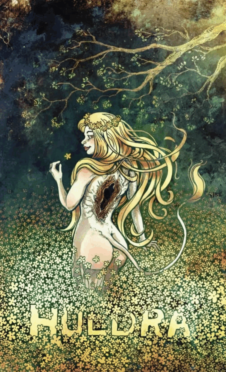 Huldra to istota zamieszkująca głębokie norweskie lasy. Z przodu wygląda jak niezwykle piękna kobieta, lecz jej sekret kryje się z tyłu — ma lisi ogon i często dziurę w plecach przypominającą wnętrze wydrążonego drzewa.